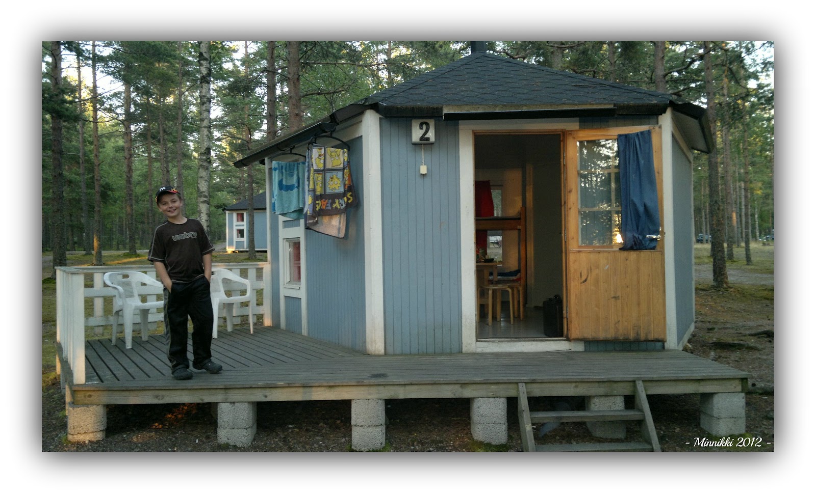 Ihan ok mökki, tuli vesi, oli jääkaappi, kahvinkeitin, astioita ja oma wc, mutta hirveän lapsiystävälliseksi en menisi kehumaan.. Kuistin rakentajalle oli varmaan tullut kiire, ja puolet kaiteesta uupui. Kolme kerrossänkyäkin ok, mutta yläpedit ilman minkäänlaista turvakaidetta ei ole ok. Itse nukuin yhdessä yläpedissä - koko yön samassa asennossa seinässä kiinni, kun pelkäsin putoavani siitä kapeasta sängystä, joka oli tosi korkealla.